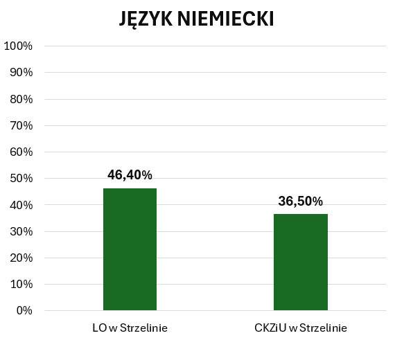 Wykres przedstawia średnie wyniki egzaminu maturalnego z języka niemieckiego w szkołach powiatu strzelińskiego